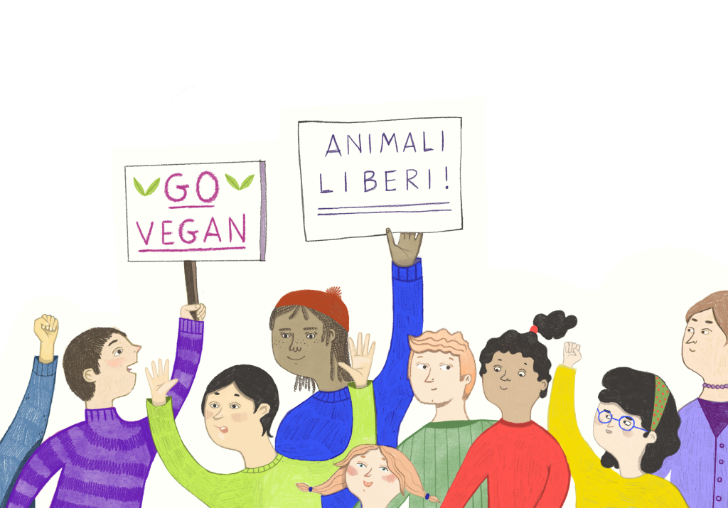 Quella che i nostri amici hanno davanti agli occhi è una vera e propria protesta. I poliziotti in tuta bianca cercano di farsi spazio fra le moltissime persone che si sono radunate davanti al rifugio. Dei ragazzi, nota Mega, si sono seduti per terra proprio davanti all’ingresso del rifugio e bloccano l’accesso alla macchina della polizia parcheggiata di fronte. Si stringono le mani, formando una catena umana. Alcuni di loro gridano a gran voce: «I santuari non si toccano!». Il signor Giovanni li ha seguiti da vicino e ora si dirige verso gli agenti della polizia. Sembra un po’ spaventato, ma il suo passo è fermo e sicuro. «Cosa sta succedendo qui?» chiede facendosi strada fra i manifestanti. «Siamo qui per un controllo sulla situazione del focolaio di peste suina, come da mandato regionale. Devo chiedere a tutte queste persone di spostarsi e permetterci di fare il nostro lavoro» risponde uno dei due poliziotti.