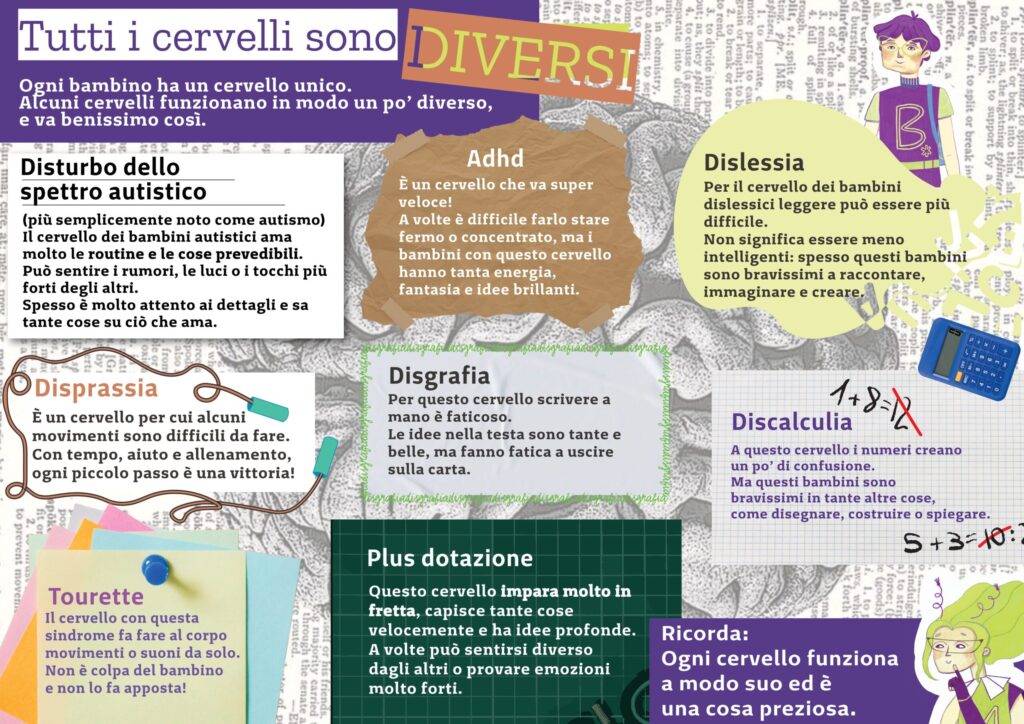 «No! Le maestre ci hanno detto che non è una malattia, ma semplicemente un funzionamento diverso della mente. È come se un cervello avesse una lente colorata davanti: è sempre un cervello, ma vede le cose in maniera diversa da come le vedrebbe uno senza lente. Per esempio, nella mia classe c’è un bambino autistico e l’autismo è una neurodivergenza. Non è malato di autismo, ragiona solo in maniera diversa da come faccio io».