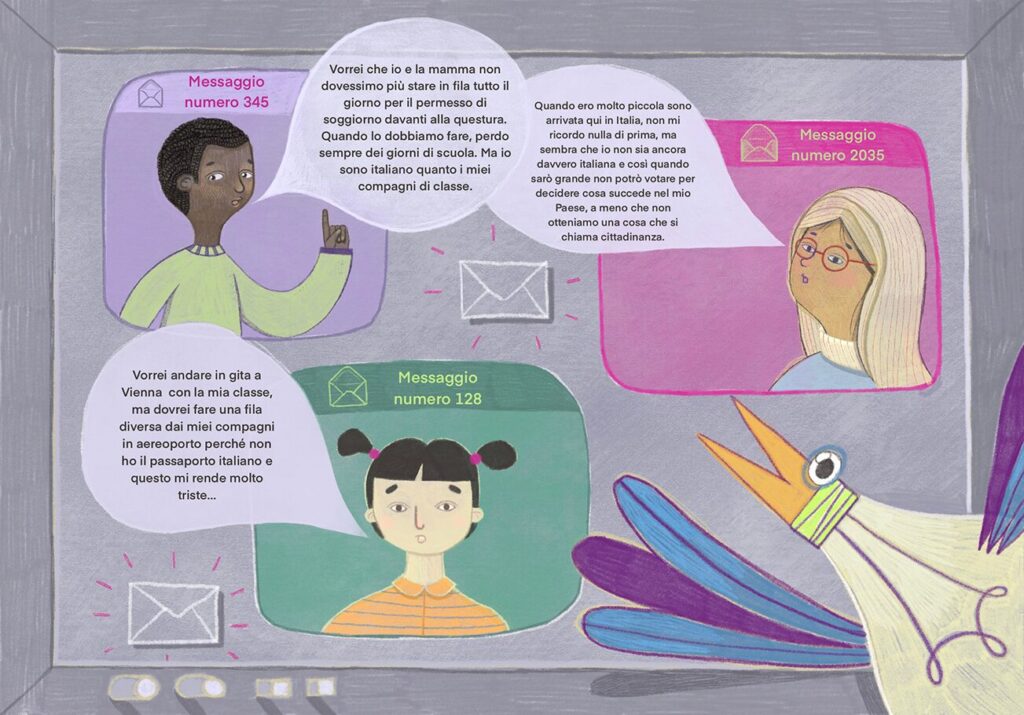 «Ma questi bambini non hanno la cittadinanza italiana. Perché? Sono nati o cresciuti in Italia e si sentono italiani, a giudicare dai loro messaggi: eppure non lo sono? Come si fa a ottenerla?» si domanda perplessa Mega.